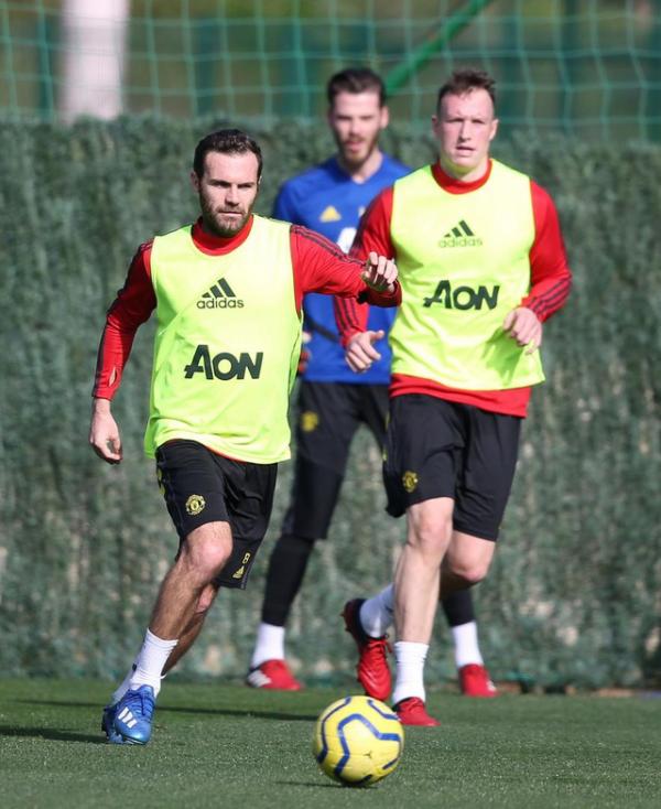 Juan Mata và Phil Jones trên sân tập, cả hai đều không đóng góp được nhiều cho Man Utd ở mùa giải năm nay. Gánh nặng tuổi tác và xuống phong độ khiến Mata thường mờ nhạt mỗi khi ra sân, trong khi chấn thương đã tàn phá sự nghiệp của Jones, giờ đây anh luôn khiến cổ động viên Man Utd lo lắng mỗi khi được tung ra sân