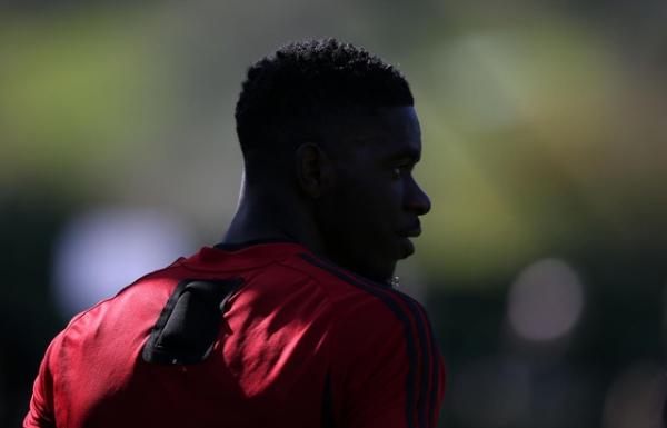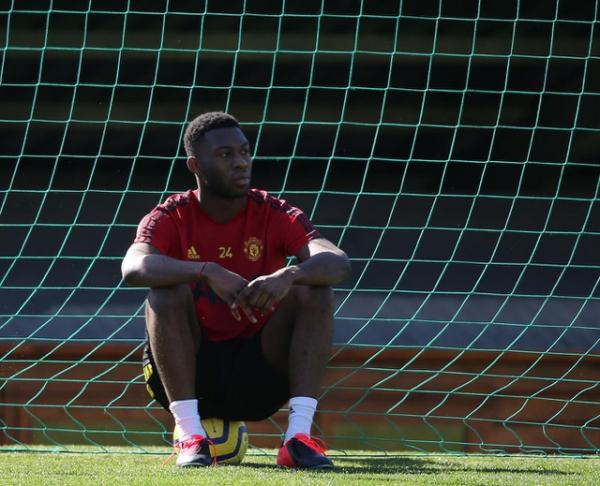 Timothy Fosu-Mensah trên sân tập. Việc thường xuyên bị chấn thương ở mùa giải năm nay khiến cầu thủ 22 tuổi người Hà Lan không có cơ hội tranh vị trí ra sân tại Man Utd