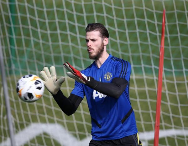 Thủ thành David De Gea trên sân tập. Ở mùa giải năm nay De Gea vẫn chưa có được phong độ ổn định, thủ thành người Tây Ban Nha cần thể hiện tốt hơn ở nửa cuối mùa giải bởi Dean Henderson (đang được Man Utd cho Sheffield Utd mượn) cũng đang khát khao có được vị trí số 1 của Man Utd