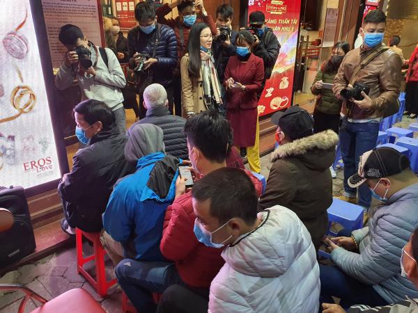 Cụ thể, trong ngày vía Thần Tài 2020 (ngày 3/2/2020), khách hàng vẫn xếp hàng từ 4h sáng để mua vào vàng. Tuy nhiên, theo quan sát của phóng viên, số lượng người mua đã giảm mạnh so với những năm trước. Dù trời Hà Nội mưa nhẹ nhưng nguyên nhân chính khiến lượng khách giảm vẫn là người dân sợ dịch Corona.