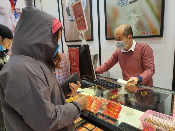 Khách mua vào các sản phẩm vàng khối lượng thấp. (Ảnh: Ngọc Lâm)