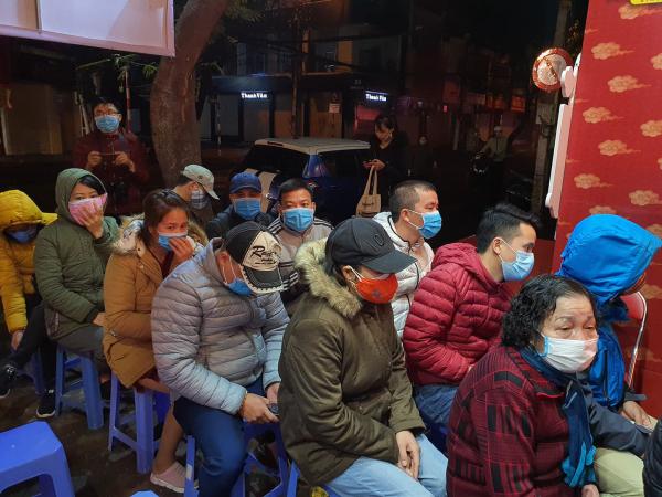 Khách kiên nhẫn chờ mua bất chấp cơn mưa nhè nhẹ của Hà Nội. (Ảnh: Ngọc Lâm)