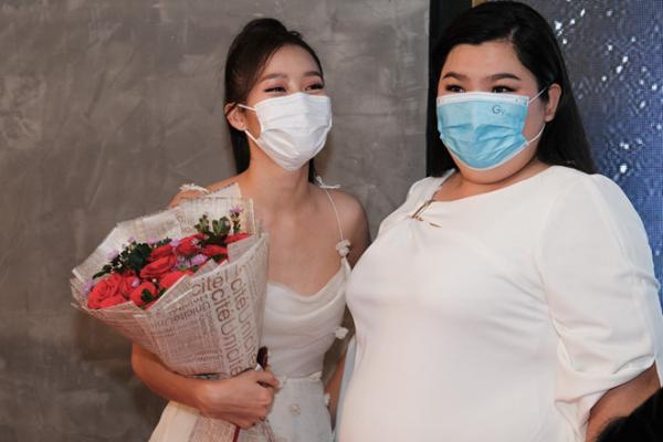 Diễn viên Khả Ngân và Tuyền Mập đeo khẩu trang tới rạp