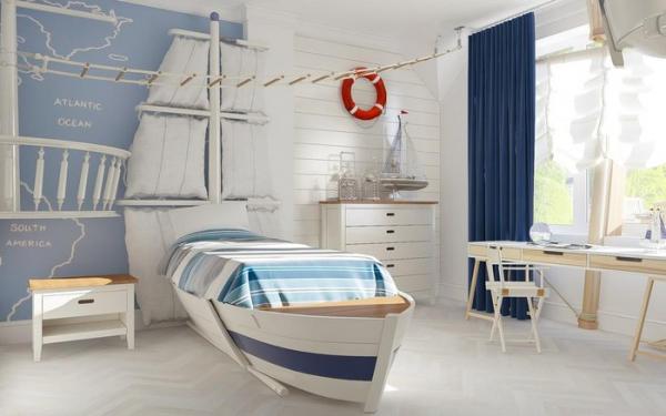 Phòng ngủ trang trí theo chủ đề biển dành cho những đứa trẻ có ước mơ muốn trở thành thủy thủ.