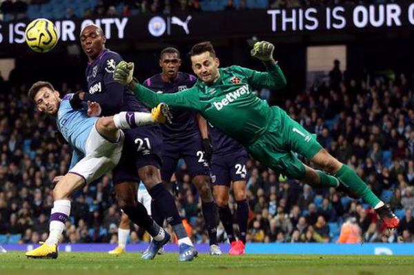 Phút 14, Cresswell để bóng chạm tay trong vòng cấm địa của West Ham, nhưng trọng tài không thổi phạt đền. Sáu phút sau, Aguero ngã trong vòng cấm địa của đội khách và vẫn không có phạt đền dành cho đội chủ nhà.