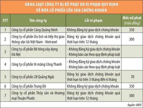 Cùng với bị xử phạt vì không đưa hoặc chậm đưa cổ phiếu lên sàn, nhiều doanh nghiệp còn bị UBCK phạt vì những lỗi vi phạm khác.