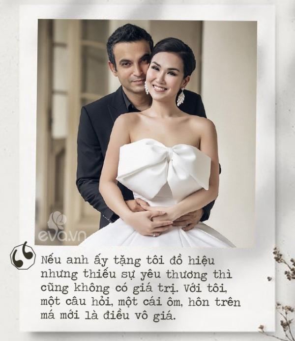 bất kì phụ nữ nào cũng sẽ thích một món hàng hiệu, nhưng tôi có tiền và tự sắm cho bản thân được. Hàng hiệu cũng chỉ là những vật vô tri vô giác, không nói lên giá trị. Nếu anh ấy tặng tôi đồ hiệu nhưng thiếu sự yêu thương thì cũng không có giá trị với tôi. Một câu hỏi, một cái ôm, hôn trên má mới là điều vô giá.