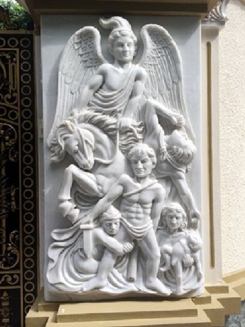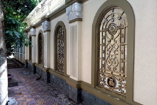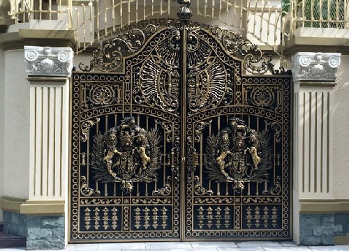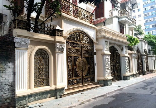 Tại khu biệt thự này, mỗi biệt thự đều có ba cổng, gồm một cổng chính có hình mặt trống đồng; hai chiếc cổng phụ có hình ảnh biểu tượng cho sức mạnh và uy quyền. Tất cả đều sử dụng màu sắc, hoa văn, đường nét hết sức tinh xảo, không chỉ phù hợp với vẻ bề ngoài mà còn tôn thêm vẻ sang trọng cho những căn biệt thự có giá tiền tỷ.