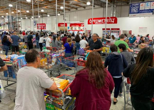 Người dân ở Los Angeles (bang California, Mỹ) đổ xô tới siêu thị mua hàng tích trữ vì sợ dịch Covid-19. Ảnh: Getty Images.