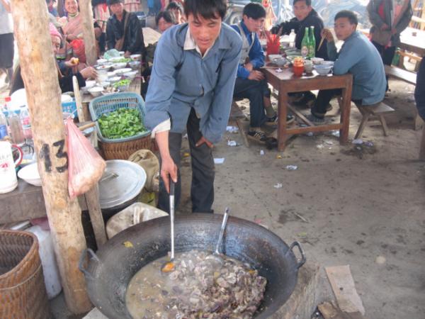 Trong mỗi phiên chợ, thắng cố luôn là món ăn được mong đợi.