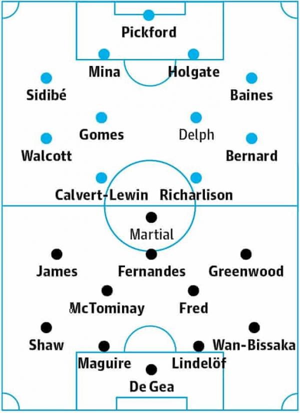 Đội hình dự kiến của Everton và MU. (Ảnh: The Guardian)
