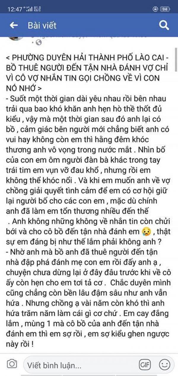 Cộng đồng mạng sôi sục khi đọc những dòng chia sẻ của thiếu phụ ở Lào Cai về chuyện bị bồ nhí của chồng nhờ người đánh ghen ngược tại nhà.