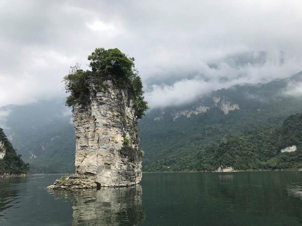 Cũng ở đó, tôi như bắt gặp hình ảnh những đảo đá vôi của di sản thiên nhiên Hạ Long khi thuyền đi qua các đảo nổi, cột đá tự nhiên giữa mặt hồ. Tuy nhiên, dù đã tham quan vịnh Hạ Long trên dưới chục lần, tôi mới chỉ được ngắm các đảo đá ẩn hiện trong sương, chứ chưa từng chiêm ngưỡng cảnh mây ôm núi trữ tình như đã thấy ở hồ Na Hang – Lâm Bình.