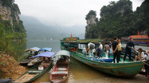 Chuyến tham quan tưởng chỉ “cưỡi ngựa xem hoa” nhưng đưa tôi từ bất ngờ này sang bất ngờ khác. Khoảng 10 giờ, những tia nắng bắt đầu xuyên thủng làn mây, làm bừng sáng cả không gian. Trước mắt chúng tôi là dãy 99 ngọn núi trùng điệp nối tiếp nhau gắn với truyền thuyết phượng hoàng bay về để tìm Kinh đô mới. Ấn tượng nhất trong hệ thống núi đá vôi là danh thắng Cọc Vài, theo tiếng Tày nghĩa là cọc buộc trâu. Cột đá tự nhiên này nổi giữa lòng hồ, gắn với sự tích về chàng trai khổng lồ Tài Ngào đắp đập ngăn dòng để giữ nước.