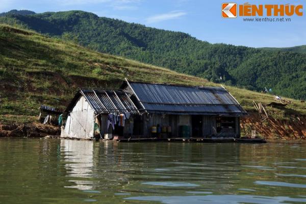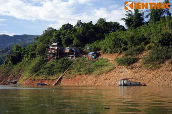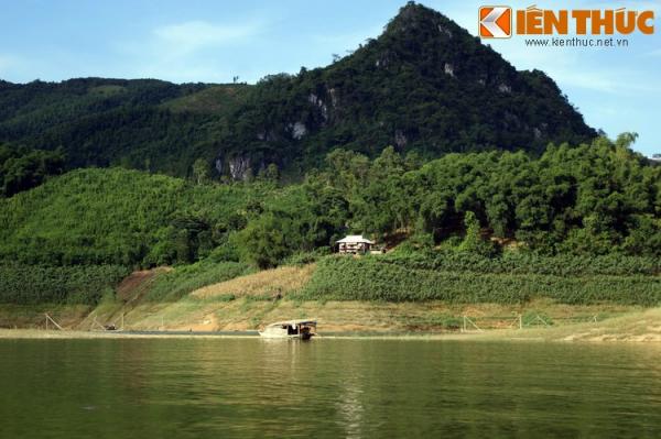 Thấp thoáng trên các hòn đảo là những túp nhà sơ của người dân tộc Mường.