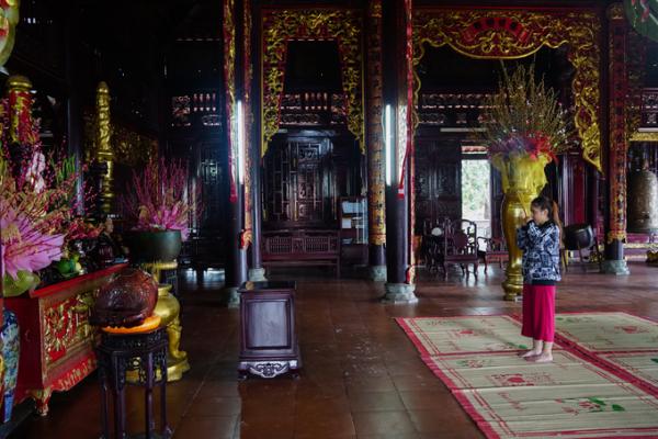 Kiến trúc gỗ của các cây cột, kèo, cánh cửa đến tượng Phật được các nghệ nhân nổi tiếng đến từ Huế chế tác tỉ mỉ.