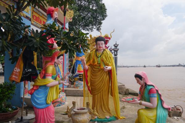 Điểm đặc biệt của ngôi chùa là có rất nhiều tượng với màu sắc sặc sỡ như thập bát la lán, các bồ tát, những nhân vật theo tín ngưỡng nhân gian, có cả tượng Tôn Ngộ Không, Đường Tăng…