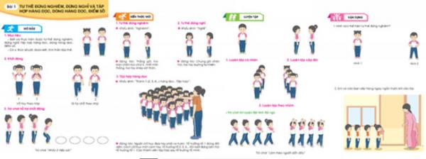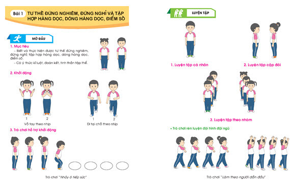 Với cấu trúc thống nhất, mỗi bài học trong SGK Giáo dục thể chất 1 còn phát huy tối đa vai trò của kênh hình và kênh chữ trong việc trình bày thông tin và gợi ý hướng dẫn tổ chức các hoạt động của HS: