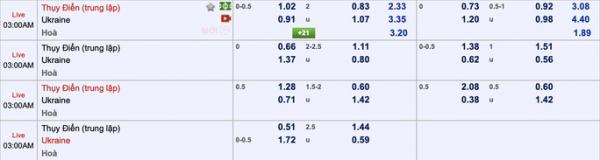 Chọn Thụy Điển và kèo Tài (2 trái, ăn 82) an toàn hơn. Thống kê cho thấy rằng có tới 3 trên 4 trận đấu gần nhất của Ukraine kết thúc với nhiều hơn 2 bàn thắng được ghi.