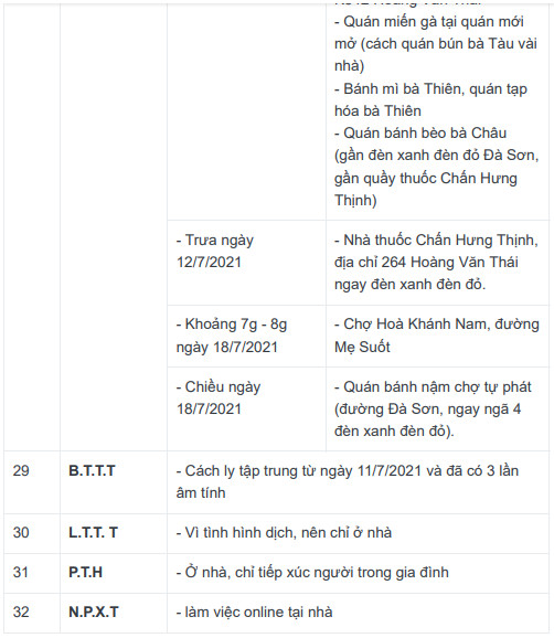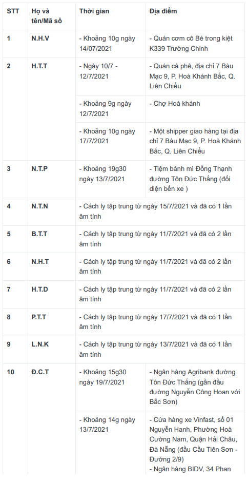 Những địa điểm có yếu tố dịch tễ, liên quan đến 32 bệnh nhân mắc COVID-19 mới được phát hiện ở Đà Nẵng: