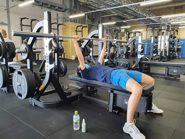 Do BTC chưa sắp xếp được lịch tập nên ngay từ sáng sớm ngày 20/7, HLV Ngô Trung Dũng cùng 2 VĐV Nguyễn Tiến Minh và Nguyễn Thuỳ Linh đến tập luyện tại phòng tập gym của Làng VĐV. Đây là phòng tập hiện đại có đầy đủ trang thiết bị dành cho các VĐV thể thao thành tích cao.