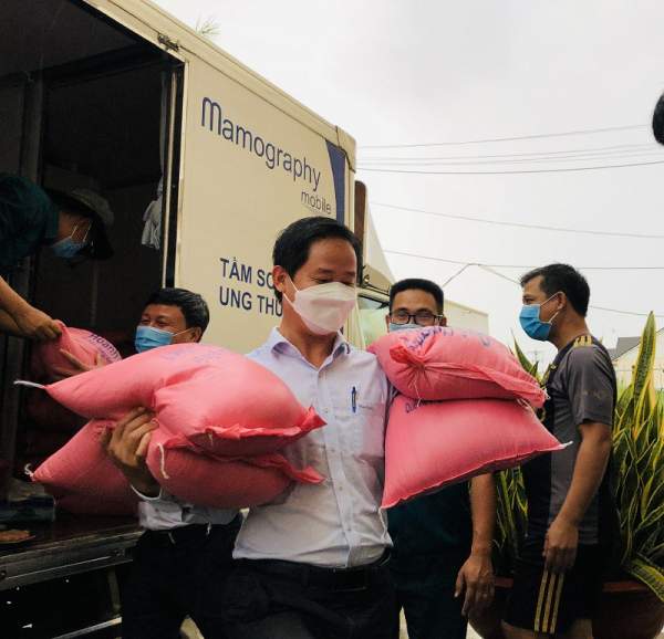 Ngoài ra, để hỗ trợ con em quê hương sinh sống, làm việc và học tập tại TP.HCM vượt qua khó khăn do dịch COVID-19, bà con thôn Hoành Vinh cũng hỗ trợ 3 tấn gạo và thực phẩm.