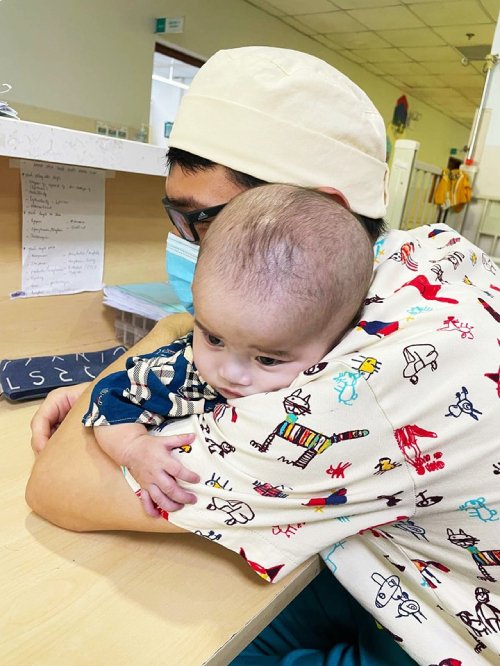 Từ khi nhập viện đến nay, bé được các bác sĩ, điều dưỡng tại hai khoa Hồi sức Sơ sinh và Ngoại lồng ngực Tim mạch bệnh viện thay phiên nhau chăm sóc, nuôi dưỡng và điều trị, cả trong và ngoài ca trực. Riêng các vật dụng như sữa tắm, tã, quần áo và sữa uống, bột... của bé do phòng Công tác Xã hội của bệnh viện gom góp, kết nối với các nhà hảo tâm hỗ trợ. Dường như ai cũng muốn dành nhiều nhất tình yêu thương, những cái ôm tiếp sức, những giờ chơi đùa cho "chàng trai dũng cảm".