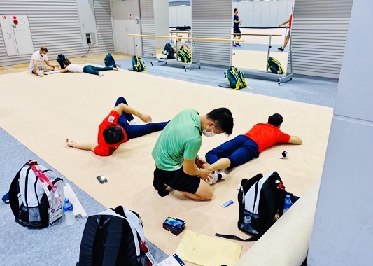 Thông tin từ Đoàn Thể thao Việt Nam (TTVN), sáng 20/7, đội tuyển thể dục dụng cụ đã bước vào buổi tập luyện đầu tiên tại nhà thi đấu của môn thể dục. Dù buổi tập kéo dài qua trưa nhưng cả 2 VĐV Đinh Phương Thành và Lê Thanh Tùng đều tích cực hoàn thành các bài xà đơn, xà kép, nhảy chống. Lãnh đội Nguyễn Kim Lan và HLV Trương Minh Sang luôn theo sát các VĐV kể từ khi đội đặt chân tới Nhật Bản.