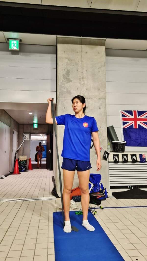Ánh Viên khởi động trước khi xuống nước. Ảnh: Thu Sâm/Đoàn TTVN.