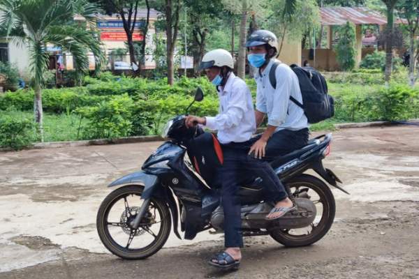 Từ sớm, hai bố con đã vượt hơn 40 km từ xã Hà Tây để đến điểm thi tại Trường THCS Nội trú huyện Chư Păh để cùng "vượt vũ môn".