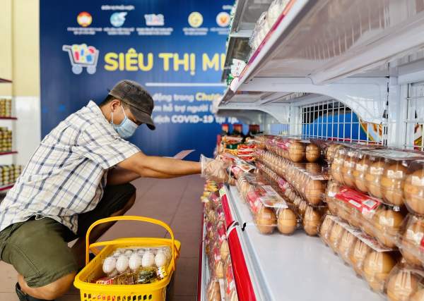 “dịch này quá khổ, không đi đâu được, tiền cũng không còn đồng nào luôn. May là có chương trình siêu thị 0 đồng này, tôi có thể mua được cho con ít sữa, cho nhà vài quả trứng, chứ không là thua luôn”, anh xúc động bày tỏ.