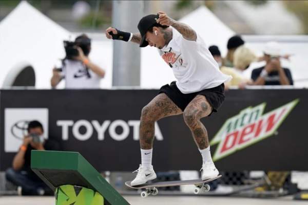 Vận động viên trượt ván Nyjah Huston có hình xăm khắp người. Anh sẽ tham dự Olympic Tokyo 2020. Ảnh: AP.