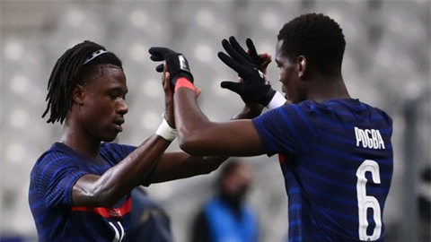 Nhiều khả năng Pogba (phải) sẽ rời MU để nhường chỗ cho người đồng đội trẻ Camavinga ở ĐT Pháp