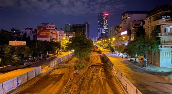 Trên phố Liễu Giai, công trường cũng tạm dừng thi công trong đêm.