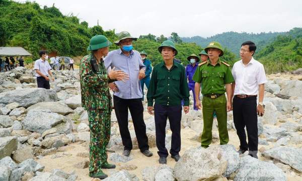 Ông Nguyễn Văn Phương – Chủ tịch UBND tỉnh Thừa Thiên Huế trao đổi với đại diện các đơn vị, lực lượng chức năng tại hiện trường.