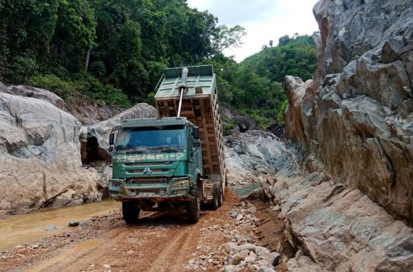 Đồi núi, đá được xẻ, đào bới để phương tiện đi vào.