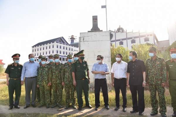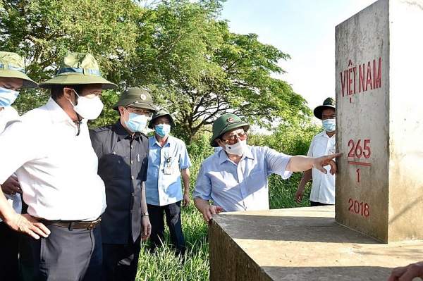 Thủ tướng Phạm Minh Chính cũng trực tiếp đi thị sát biên giới Tây Nam vào ngày 9/5. Ông động viên các lực lượng tại biên giới, đồng thời yêu cầu xây dựng các kịch bản với số ca lây nhiễm hàng chục nghìn để có giải pháp ứng phó. Ảnh: Nhật Bắc/VGP.