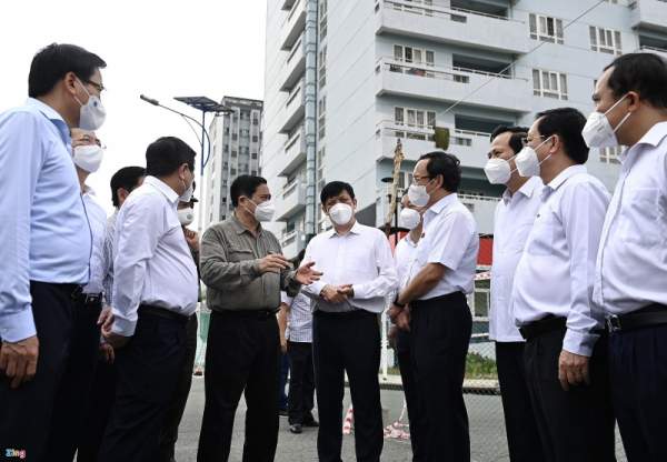 Thủ tướng Phạm Minh Chính nhấn mạnh tinh thần “tất cả vì TP.HCM” và yêu cầu dành tất cả những gì tốt nhất cho TP.HCM phòng chống dịch. Trong ảnh là buổi thị sát của Thủ tướng tới khu cách ly dã biến, bệnh viện dã chiến được lập tại Thủ Thiêm (TP Thủ Đức). Ảnh: Duy Hiệu.