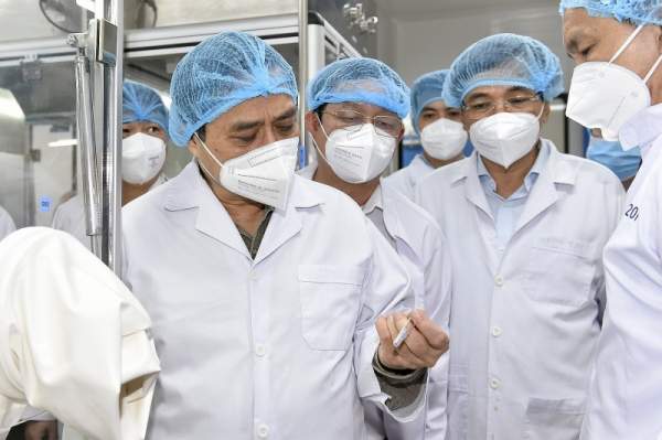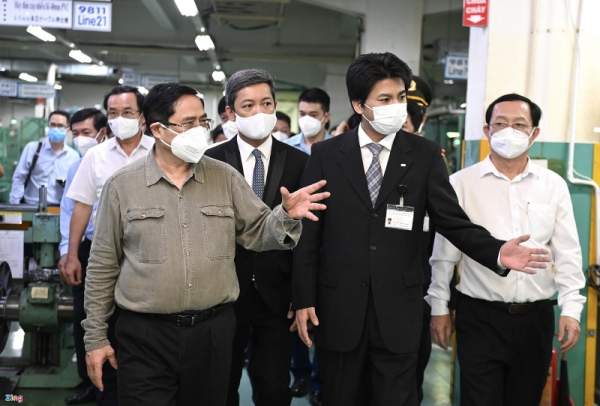 Tại các cuộc làm việc tại TP.HCM và các tỉnh phía Nam, Thủ tướng dành sự quan tâm đặc biệt tới hoạt động của các doanh nghiệp, cuộc sống của người dân trong bối cảnh dịch bệnh. Trong ảnh là các chuyến thăm của Thủ tướng tới công ty sản xuất vaccine Nanogen, một nhà máy sản xuất sữa và một doanh nghiệp FDI tại TP.HCM. Ảnh: Thuận Thắng - Phạm Ngôn.