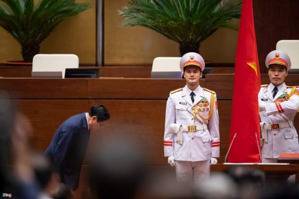 Ngày 5/4, ông Phạm Minh Chính được Quốc hội bầu giữ chức Thủ tướng. Thủ tướng Phạm Minh Chính tuyên thệ nhậm chức trước Quốc hội vào chiều 5/4. Ông hứa tiếp tục xây dựng Chính phủ hành động, kỷ cương, liêm chính, sáng tạo, hiệu quả. Ảnh: Thuận Thắng.