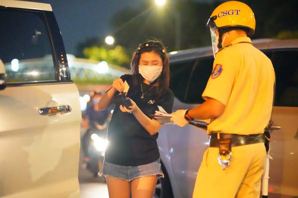 Khoảng 19 giờ 30 phút, một người phụ nữ đi xe hơi biển số Đồng Nai bị CSGT yêu cầu dừng xe, trình bày lý do ra đường. Xuống xe, người này chỉ xuất trình được giấy xét nghiệm âm tính, nhưng CSGT báo sẽ phạt vì "ra đường không cần thiết", chị bức xúc to tiếng với lực lượng chức năng.