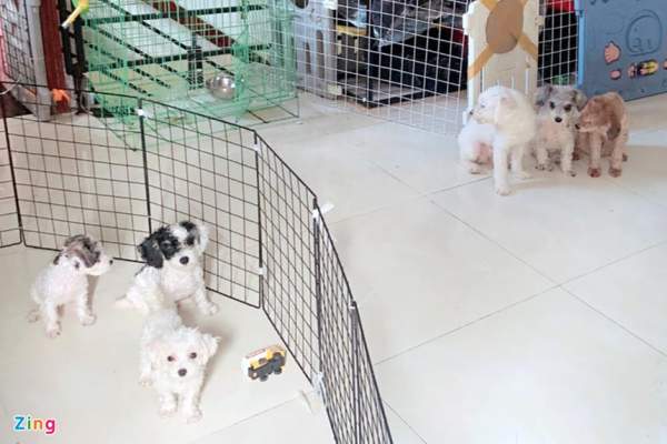Người nuôi dùng các tấm sắt quây thành không gian vui chơi cho chó, vừa tránh chúng chạy lung tung trong nhà. Ảnh: H.N.