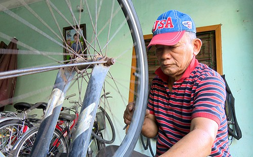 tiết trời Phú Yên những ngày đầu tháng 11 khá ấm áp. Trong căn nhà cấp 4 ở phường 3, TP Tuy Hòa, ông Hoàng Tiến Mai ngồi cặm cụi sửa chiếc xe đạp của khách vừa mang đến. Khoảnh sân phía trước, nhiều chiếc khác được sắp xếp ở một góc chờ đến lượt sửa.