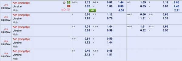 Soi kèo châu Á cho thấy tỉ lệ Anh chấp Ukraine 1-1,5 trái, ăn 95. Đội tuyển Anh đã xuất sắc vượt qua tuyển Đức ở lượt đấu 1/8 vừa qua với sự tỏa sáng của các cá nhân trên hàng công, chiến thắng đó sẽ khích lệ tinh thần thi đấu của các cầu thủ Anh lên rất nhiều, rõ ràng con đường phía trước của Tam sư đã dễ thở hơn.