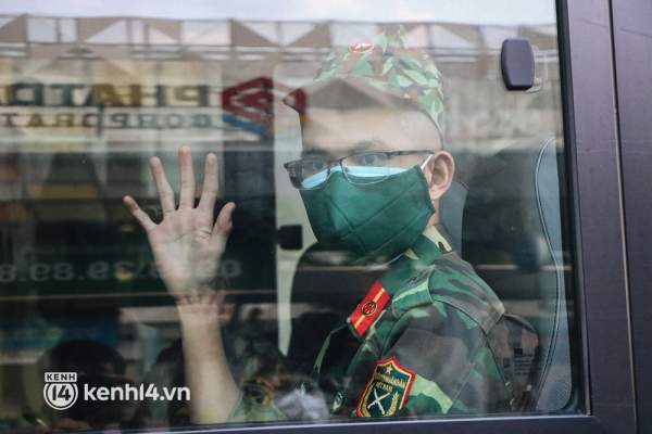 Các chiến sĩ vẫy tay chào khi xe bắt đầu lăn bánh