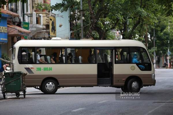 Xe chở những trường hợp F1 đi cách ly chiều 21.8 tại phường Văn Miếu.
