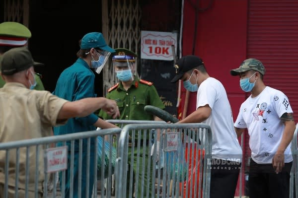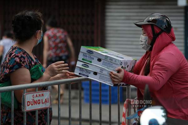 Nhiều người tiếp tế nhu yếu phẩm cho người dân sống trong địa bàn phường Văn Miếu.