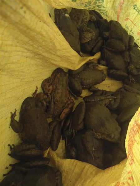 Nói rồi, Lý lò dò lội theo dòng suối, vén cỏ dại ven bờ tìm hang ếch để đào, sau vài phút hì hụi đào lấy đào để Lý lại lôi ra hai con ếch hương béo tròn cho vào bao tải rồi tiếp tục men theo dòng suối truy lùng vết tích của ếch.