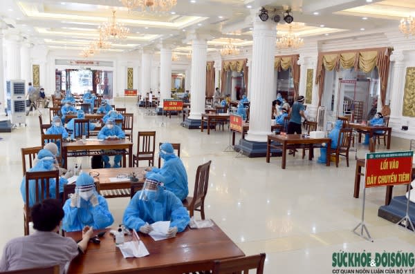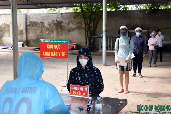 bệnh viện HNĐK Nghệ An đã bố trí 10 dây chuyền tiêm theo đúng quy định về tiêm chủng: mỗi dây chuyền tiêm có 3 cán bộ y tế gồm: 01 điều dưỡng khai báo y tế, đo huyết áp; 01 bác sĩ khám sàng lọc trước tiêm chủng; 01 điều dưỡng thực hiện tiêm chủng.