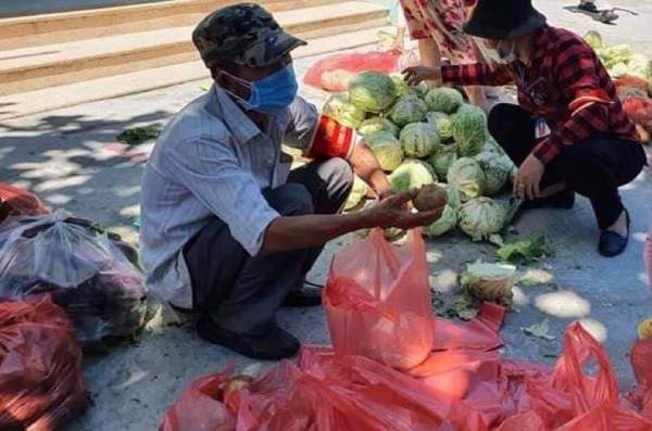 Khi Đà Nẵng thực hiện giãn cách xã hội, ông T. là người đi chợ, chọn rau củ cho bà con. (Ảnh: Báo Đà Nẵng)